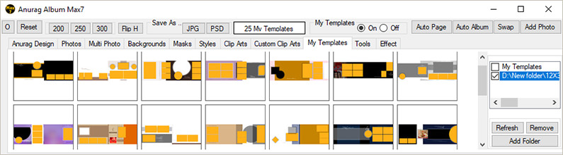 In Anurag Abum MAX 8, Now you can design wedding album with own designed templates or purchased templates using adding templates feature in My Template.